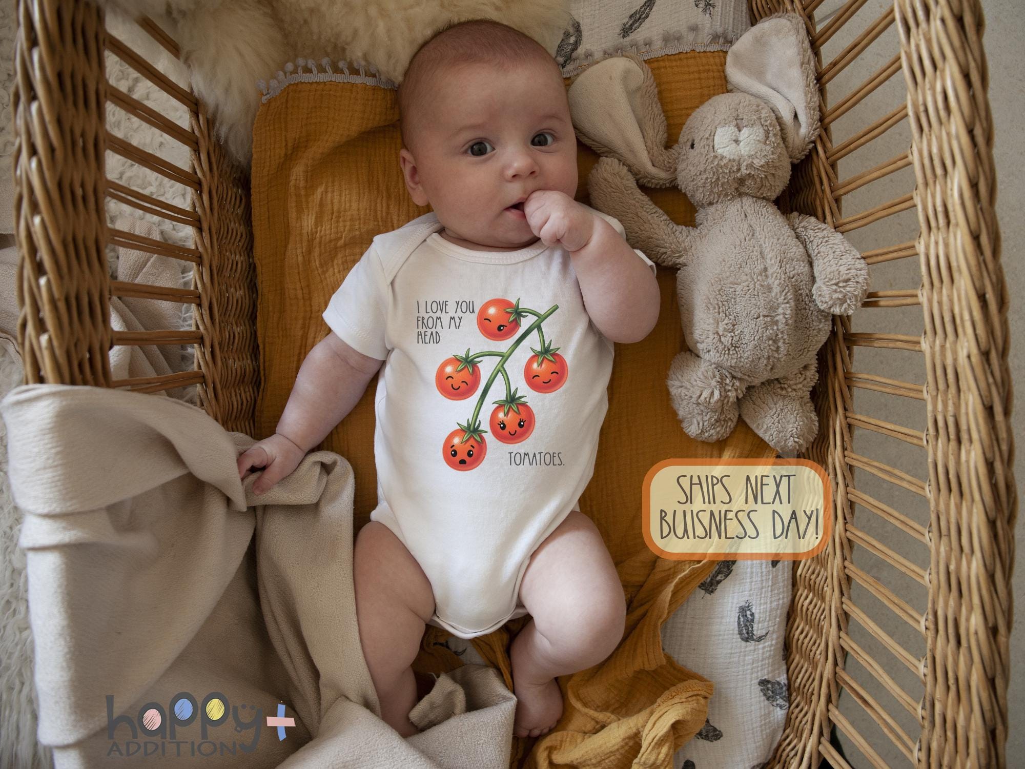 The trademark Onesie®S® is owned by Gerber Childrenswear. Terms "Onesie®S," "Onesie®," "1Z," "ONZEE" and anything similar are all used in accordance with Gerber Childrenswear's policies. These terms are in reference to the Gerber Childrenswear label and describe Genuine Gerber Childrenswear products used by Happy Addition.